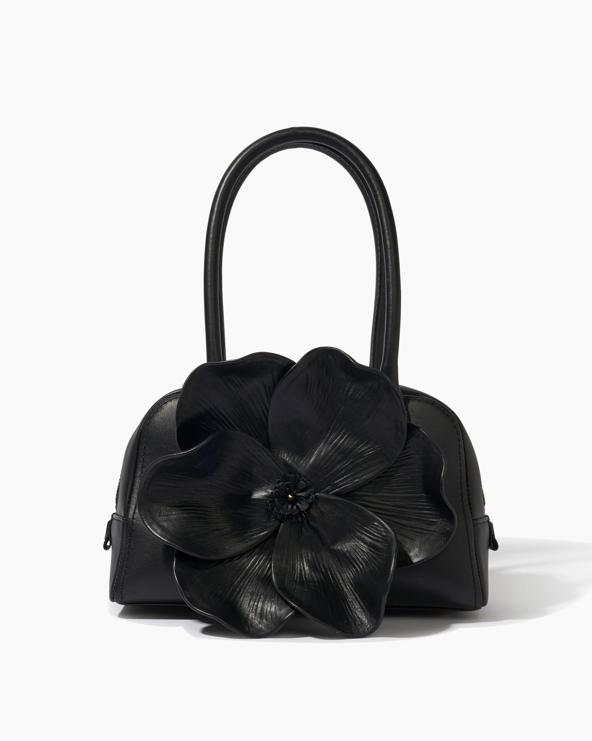 Topped with an oversized flower, this calfskin leather bowling bag will lend romance to any ensemble. SKU S2534N601LEA COMPOSITION & CARE 100% Leather Washing Instructions Spot Clean Only Made in Spain