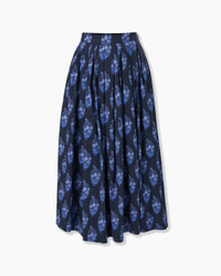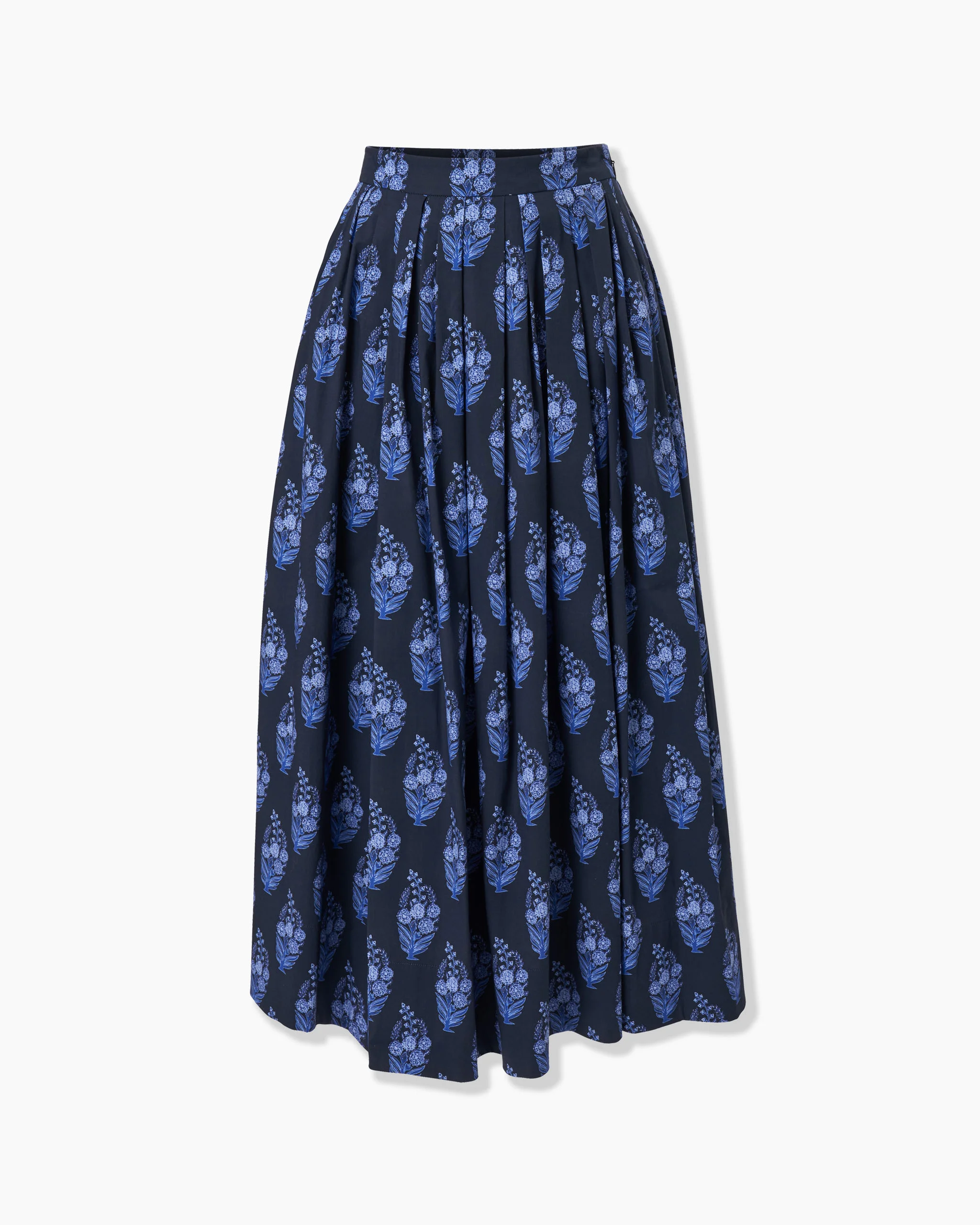 Crafted of stretch-cotton, this pleated midi skirt showcases a beautiful floral block print. Style it with the matching Icon Shirt in midnight blue. Elastic at the back of the waistband Side pockets Fully lined SKU E2511N301FMP SIZE & FIT High-waisted, A-line midi length Midweight stretchy cotton Model is 180cm/ 5’11” and is wearing a US 2 Bust: 31" Waist: 23" Hips: 34.5" COMPOSITION & CARE 97% Cotton, 3% Elastane Washing Instructions Dry Clean Only Made in Italy