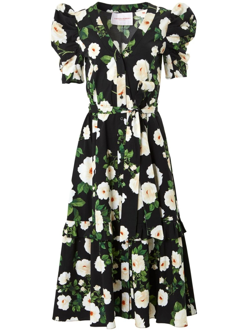 rose-print cotton midi dress
