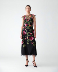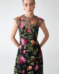 Inspired by Flemish oil paintings, this sleeveless midi dress is richly embroidered with shimmering chrysanthemums that stand out against a sheer black tulle base. Concealed hook-and-eye closures at the back SKU C2611E523NTU SIZE & FIT Fitted bodice with A-line midi skirt Lightweight embellished tulle Model is 178cm/ 5’10” and is wearing a US 2 Bust: 30.5" Waist: 24.5" Hips: 34.5" COMPOSITION & CARE 100% Nylon Washing Instructions Dry Clean Only