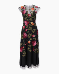 Floral-Embroidered Tulle Midi Dress