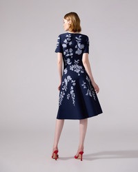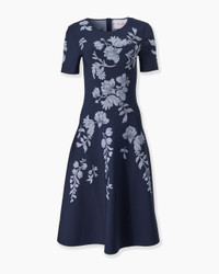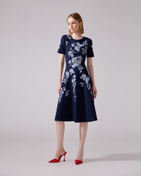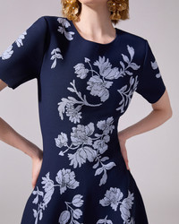 Cut from stretch jacquard, this midi dress flaunts the season's bold floral motif and a flattering fit-and-flare silhouette. Concealed zip fastening at back SKU E2512N501VPJ SIZE & FIT Fitted bodice, soft A-line midi skirt Stretchy jacquard Model is 178cm/ 5’10” and is wearing a US 2 Bust: 31" Waist: 23" Hips: 34" COMPOSITION & CARE 83% Viscose 17% Polyester Washing Instructions Dry Clean Only Made in Italy