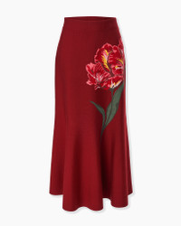 This merino wool jacquard skirt showcases a brightly hued floral motif and a dramatic flared hem. Pair it with the matching funnel-neck sweater for a polished, sophisticated look. SKU F2512N303KWO SIZE & FIT Close fit to the thigh with flared hem Midweight wool jacquard Model is 176cm/ 5’9” and is wearing a US 2 Bust: 29.5" Waist: 23" Hips: 33.5" COMPOSITION & CARE 100% Virgin Wool with Cotton Washing Instructions Dry Clean Only Made in Italy
