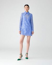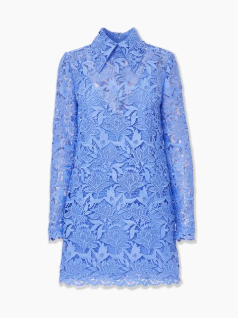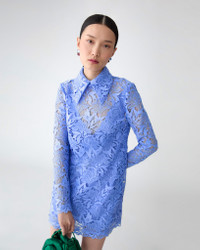 The season's tulip motifs are rendered in intricate guipure lace on this coquettish mini dress, detailed with a point collar and a scalloped hem and cuffs. Runway style Lined Concealed zip closure at the back SKU F2511N563TUF SIZE & FIT Fitted bodice, A-line mini skirt Midweight floral lace Model is 178cm/ 5’10” and is wearing a US 2 Bust: 29" Waist: 23" Hips: 34.5" COMPOSITION & CARE 100% Polyester Washing Instructions Dry Clean Only Made in Italy