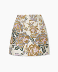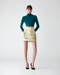 This opulent mini skirt is cut from luxurious jacquard, intricately woven with silver, green, and golden threads in a vintage-inspired floral pattern. Style it with matching jacquard pieces. Runway style Concealed zip closure at the back SKU F2511N317FLJ SIZE & FIT A-line, mini length Midweight jacquard Model is 179cm/ 5’11” and is wearing a US 2 Bust: 29.5" Waist: 22" Hips: 34.5" COMPOSITION & CARE 79% Polyester, 11% Polyester Metal, 10% Nylon Washing Instructions Dry Clean Only Made in Italy