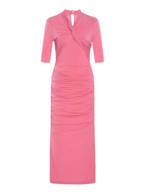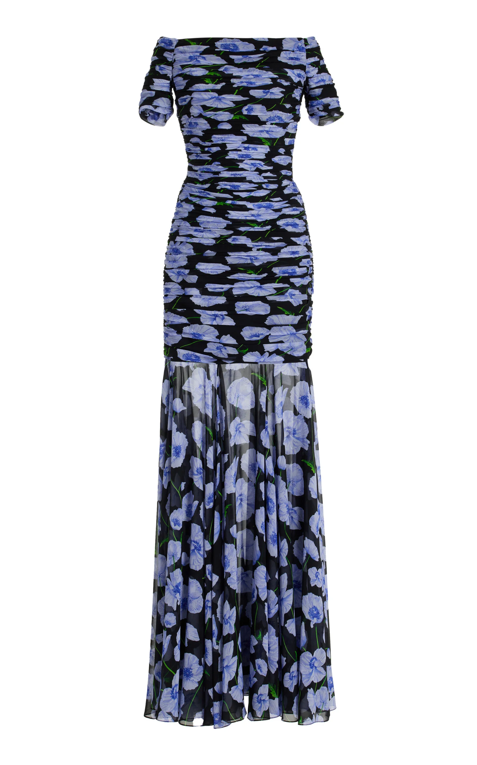 Inspired by the “self-assured” Carolina Herrera woman, Wes Gordon continues to reinterpret—yet still honor—the house’s iconic codes reimagining signatures with fresh whimsy. Crafted from silk, this ruched off-the-shoulder gown is trimmed with a long flowy skirt that skims the floor. PRODUCT DETAILS - Spring/Summer '25 - Concealed zip fastening along back - Composition: 100% Silk - Dry clean only - Made in the USA SIZE & FIT - Designed for a slim fit