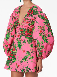 floral-print V-neck dress floral-print V-neck dress from CAROLINA HERRERA featuring flamingo pink, multicolour, all-over floral print, V-neck, long puff sleeves, elasticated cuffs, rear zip fastening, straight hem and thigh-length. Made in Italy Composition Polyester 100% SIZE & FIT Measurement HIPS 45.66 in(116 cm) LENGTH 35.03 in(89 cm) WAIST 29.92 in(76 cm) Washing instructions Dry Clean Only
