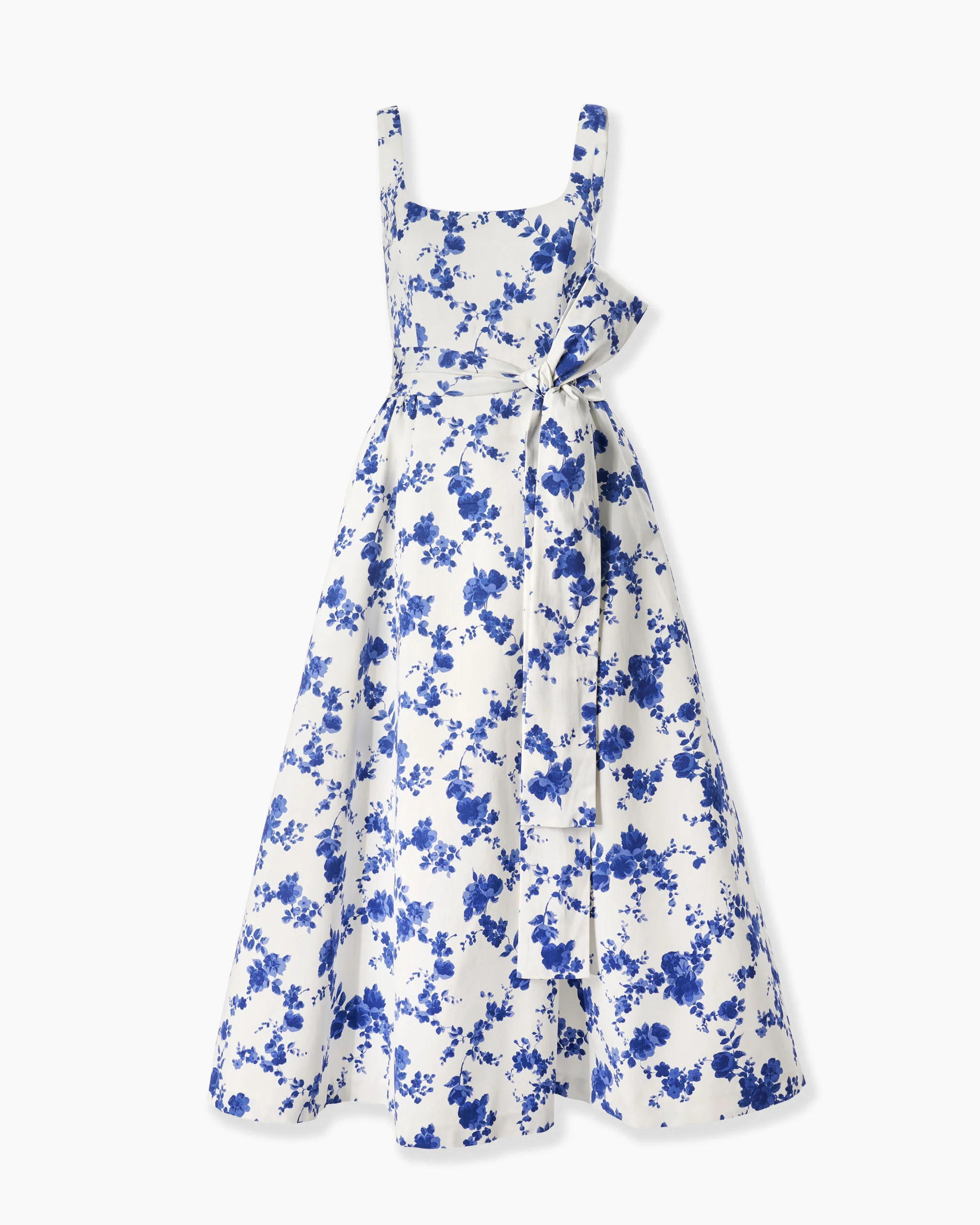 Cut from stretch-cotton faille with a vintage floral print, this scoop-neck dress features a wide sash at the waist and a flared midi skirt. Concealed zip fastening at back SKU E2511N517WPF SIZE & FIT Fitted bodice, soft A-line midi skirt, self belt Midweight stretchy cotton blend Model is 180cm/ 5’11” and is wearing a US 2 Bust: 31" Waist: 23" Hips: 34.5" COMPOSITION & CARE 49% Cotton, 47% Viscose, 4% Elastane Washing Instructions Dry Clean Only Made in Italy