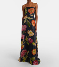 A permanent fixture on the red carpet, Carolina Herrera is credited with the most elegant eveningwear. This strapless gown is made from pure silk and detailed with an all-over floral print. Product Details - Material: 100% silk - Care instructions: dry clean - Made in the USA - Color: blue - Designer color name: Midnight Multi - Lining: 100% silk - Built-in bustier - Boning - Closure: zip and hook fastening - Item number: P01105879 Size & Fit - True to size - Strapless - Internal boned corset for support - Cinched waist - Non-stretchy fabric - The model seen in the picture is 178cm-5'10" and wearing a size US 4
