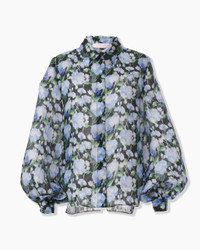 Peony-Print Organza Shirt