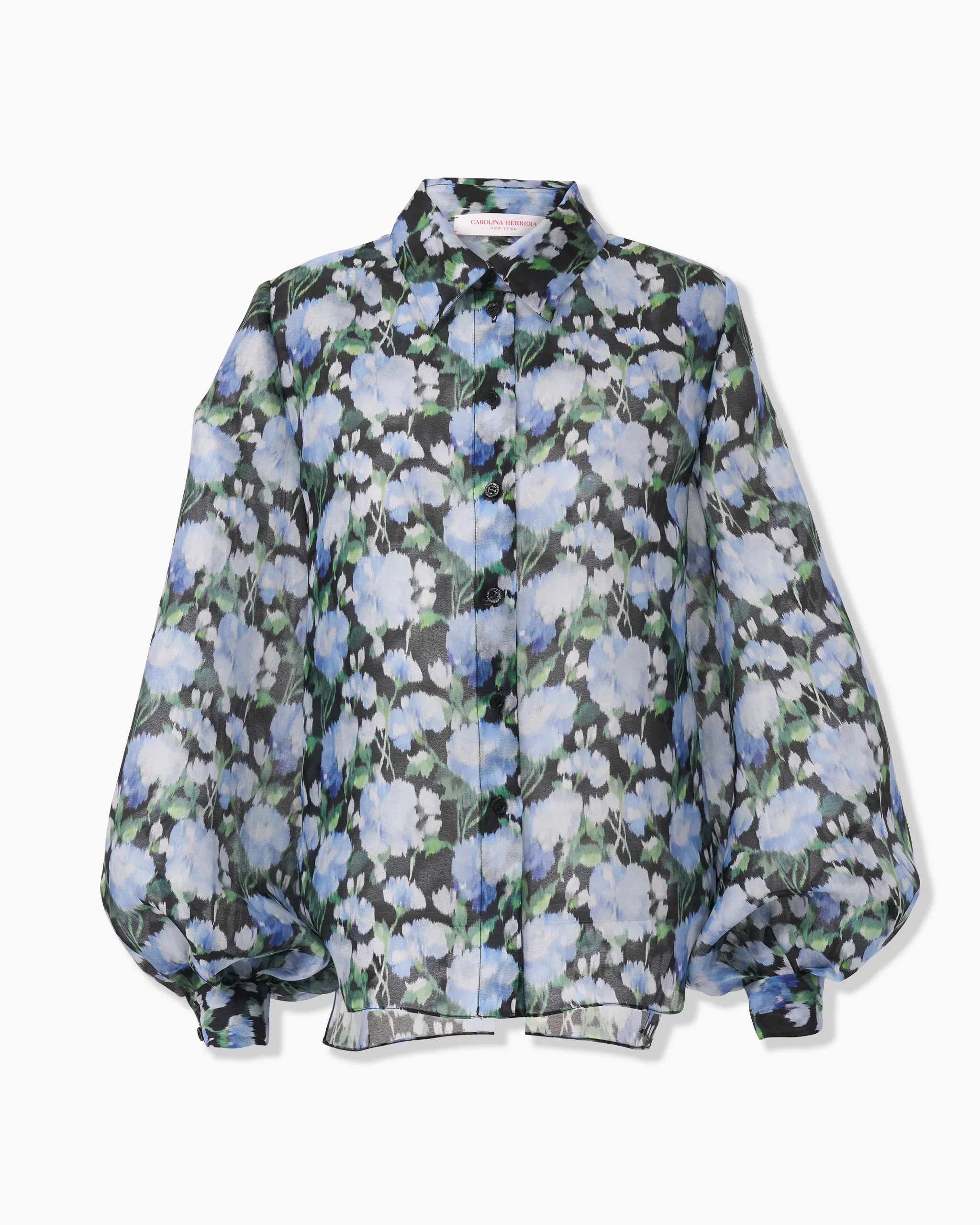 Crepe organza in a playful peony print defines this button-down, whose voluminous sleeves provide a finishing flourish. SKU P2511N213PCO SIZE & FIT Slim fit Lightweight crepe Model is 180 cm/ 5’11” and is wearing a US 2 Bust: 32" Waist: 23" Hips: 35" COMPOSITION & CARE 100% Silk Washing Instructions Dry Clean Only Made in United States of America