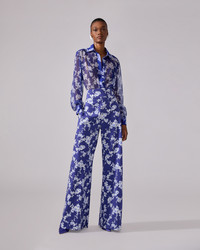 Cut from stretch-cotton faille with a blue-and-white floral print, these floorsweeping, wide-leg pants will look fabulous paired with the matching Chiffon Floral-Print Shirt. Side pockets Concealed zip fastening at side SKU E2511N411WPF SIZE & FIT High-rise, wide-leg fit Midweight stretchy cotton blend Model is 180cm/ 5’11” and is wearing a US 2 Bust: 31" Waist: 23" Hips: 34.5" COMPOSITION & CARE 49% Cotton, 47% Viscose, 4% Elastane Washing Instructions Dry Clean Only Made in Italy