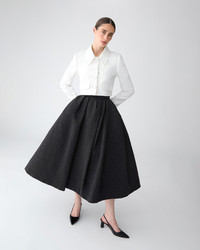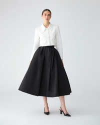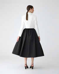 Realized in textured floral cloque, this voluminous midi skirt is inspired by the 1950's doll collection of Wes Gordon's mother. Wear it with the matching cropped jacket. SKU P2511N315CCQ SIZE & FIT Voluminous A-line midi skirt Midweight cotton blend Model is 178cm/ 5’10” and is wearing a US 2 Bust: 31" Waist: 23" Hips: 33" COMPOSITION & CARE 95% Cotton 5% Viscose Washing Instructions Dry Clean Only Made in United States of America