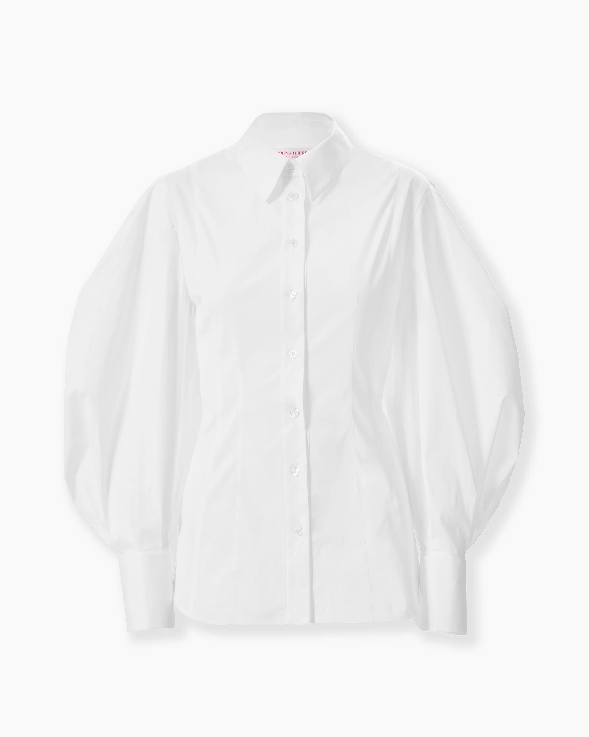 A classic cotton button-down is elevated with exaggerated balloon sleeves and high cuffs. SKU R2511N203SCT COMPOSITION & CARE 97% Cotton, 3% Elastane Washing Instructions Dry Clean Only Made in Italy