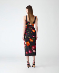 Chrysanthemums inspired by Flemish oil paintings bring vibrant contrast to this printed faille midi dress. Graphic pleating through the bodice creates an alluring silhouette, framed by wide shoulder straps. SKU C2611N521CYF SIZE & FIT Close-fitting column silhouette, midi length Midweight faille Model is 178cm/ 5’10” and is wearing a US 2 Bust: 32" Waist: 23.5" Hips: 34.5" COMPOSITION & CARE 100% Polyester Washing Instructions Dry Clean Only Made in United States of America