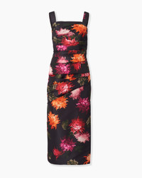 Chrysanthemum-Print Draped Midi Dress