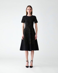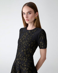 Woven with gold lurex branch motifs, this fit-and-flare jacquard dress shimmers with understated elegance. Its flattering silhouette and effortless polish make it the perfect choice for evening events. SKU C2612N501VPJ SIZE & FIT Slim-fit bodice, flared midi skirt Stretch-viscose jacquard knit Model is 178cm/ 5’10” and is wearing a US 2 Bust: 32" Waist: 23.5" Hips: 34.5" COMPOSITION & CARE 83% Viscose 17% Polyester Washing Instructions Dry Clean Only