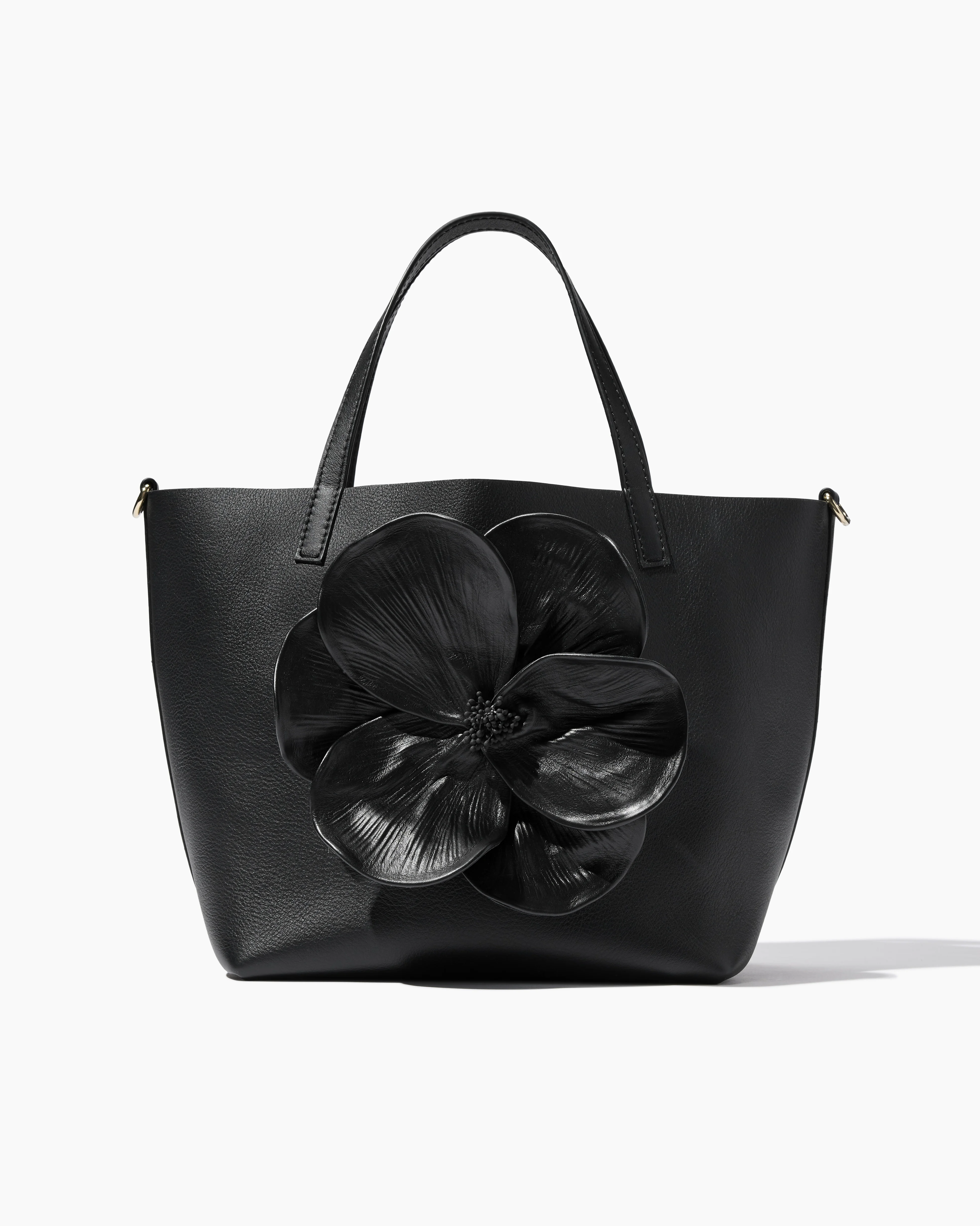 Topped with an oversized flower, this smooth leather medium bag will lend romance to any ensemble. Detachable leather strap Suede calfskin lining Width: 38 cm Height: 24 cm Depth: 17 cm COMPOSITION & CARE 100% Calf Leather Washing Instructions Clean with a soft, dry cloth Made In Spain SKU C2534N605LEA