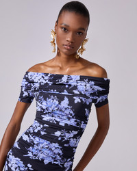 A bold floral print defines this figure-hugging gown, cut from jersey with an off-the-shoulder neckline and delicate ruching throughout. Off-the-shoulder neckline Concealed zip fastening at the back SKU E2515N501TBJ SIZE & FIT Close Fit Midweight stretchy jersey Model is 180cm/ 5’11” and is wearing a US 2 Bust: 31" Waist: 23" Hips: 34.5" COMPOSITION & CARE 90% Viscose 10% Elastane Washing Instructions Dry Clean Only