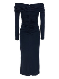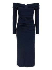 off-shoulder midi dress Highlights - Navy blue - Off-shoulder neckline - Three-quarter sleeves - Midi length Imported Composition Acrylic 80%, Polyamide 20% Washing instructions Read Manufacturer Guidelines