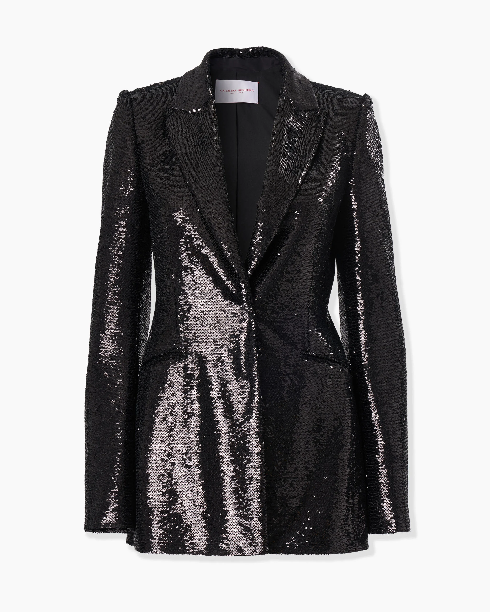 Covered in shimmering black micro-paillettes, this sleek jacket is tailored with peak lapels and a defined waist. Pair it with our stretch-wool Slim-Leg Emilie Pants for a chic evening look. Decorative pockets SKU C2611N106SEQ SIZE & FIT Regular fit Midweight all-over sequin Model is 176cm/ 5’9” and is wearing a US 2 Bust: 29.5" Waist: 23" Hips: 33.5" COMPOSITION & CARE 100% Polyester Washing Instructions Dry Clean Only