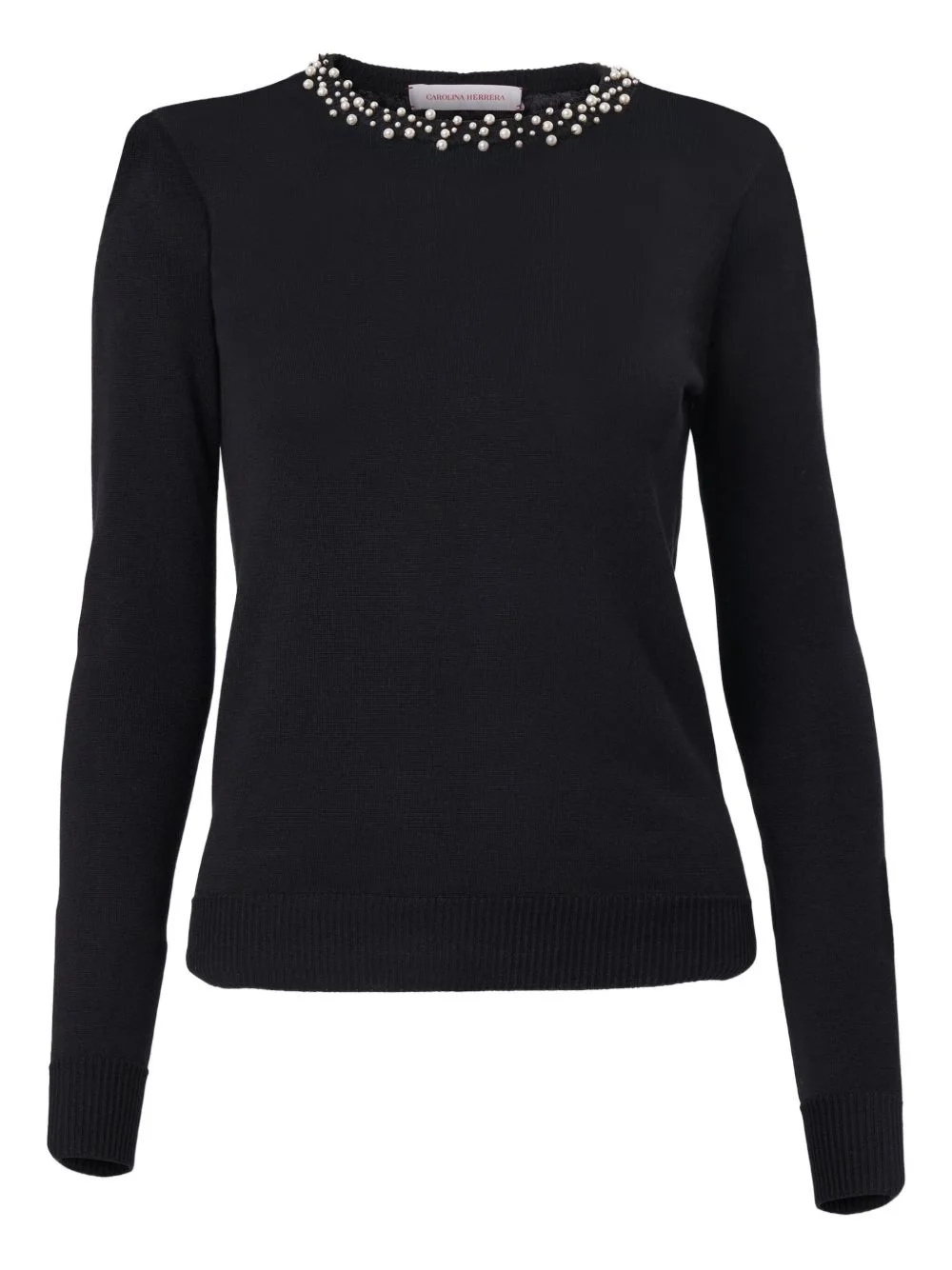 pearl-embroidered sweater Highlights - Black - Pearl embellishment - Round neck - Long sleeves - Ribbed hem and cuffs Imported Composition Polycotton 100%, Silk 55%, Cotton 45% Washing instructions Dry Clean Only