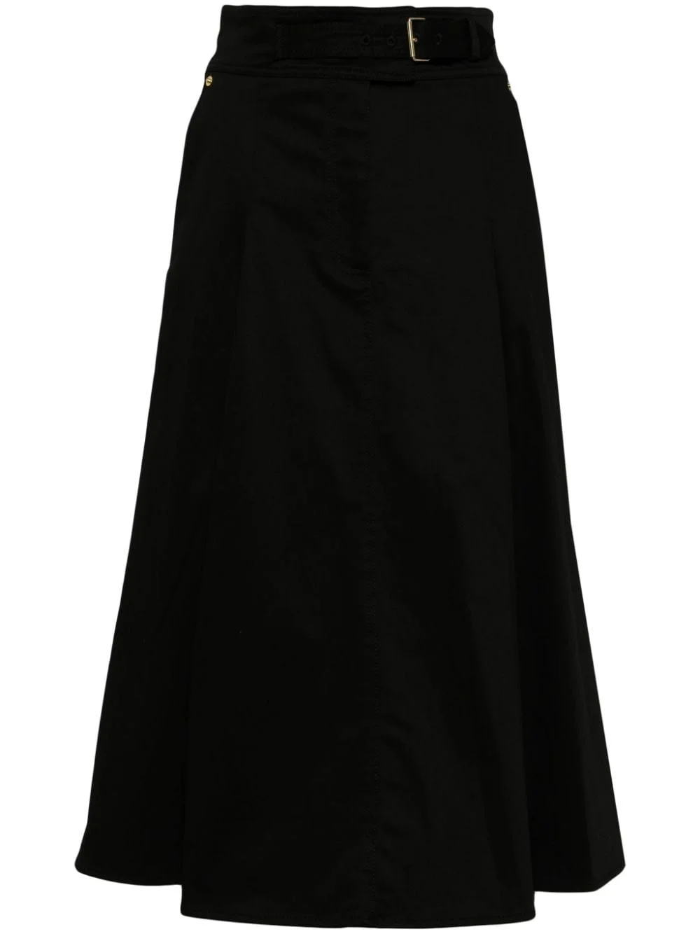 pleated cotton midi skirt Highlights - Black - Stretch-cotton - Belted waist - Pleat detailing - Below-knee length - Straight hem Made in Italy Composition Cotton 97%, Elastane 3% SIZE & FIT Model measurements Height 5 ft 9 in(1.76 m) Bust/Chest 31.1 in(79 cm) Hips 35.03 in(89 cm) Waist 24.4 in(62 cm) FittingInformation This midi-length skirt is intended to be worn high on the waist The belt offers adjustability for fitted preferences Made from a midweight stretch fabric, this piece offers elasticity and flexibility when worn This piece fits true to size – take your usual size Washing instructions Dry Clean Only