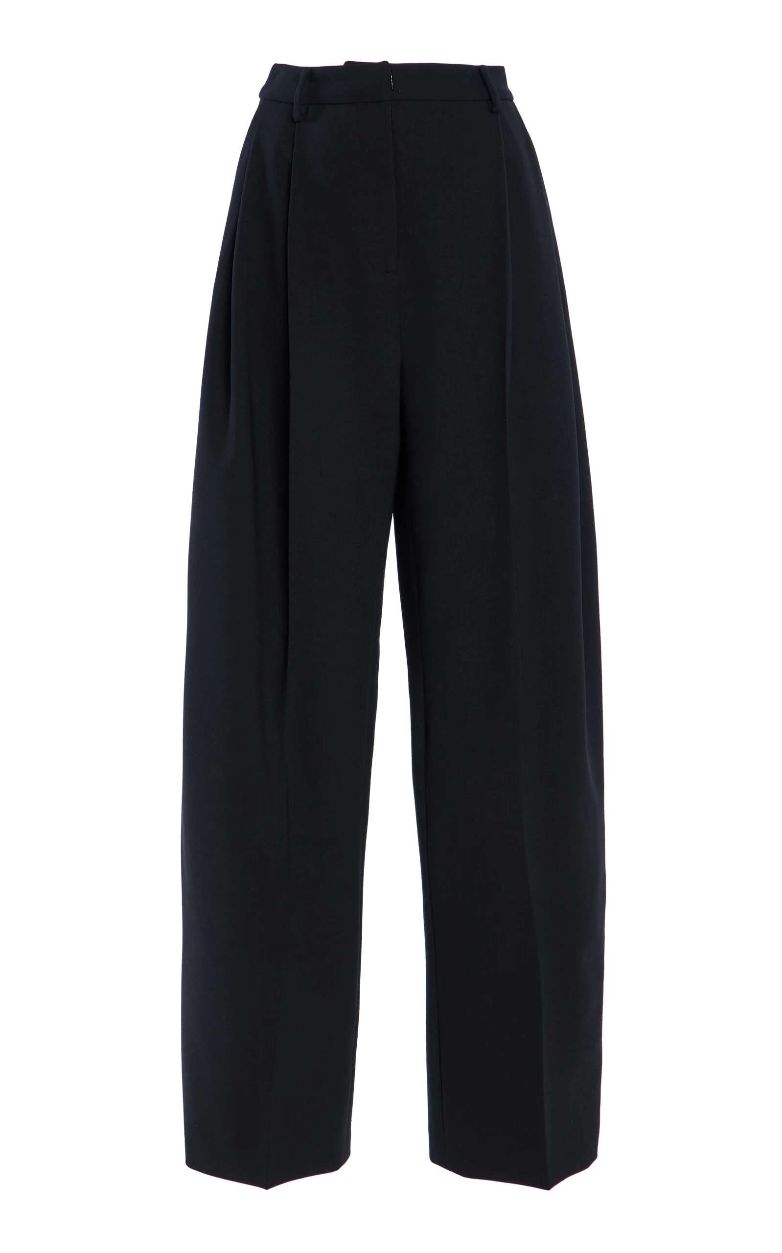 PRODUCT DETAILS - Fall '25 - Regular fit, mid rise, belt loops, pleating, wide leg - Zipper fastening - Composition: 97% Virgin Wool, 3% Elastane - Color: Melange Grey - Dry clean - Made in the USA
