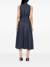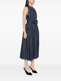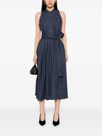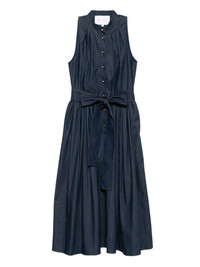 sleeveless dress Highlights - Navy blue - Front button fastening - Detachable strap Made in United States Composition Outer: Cotton 58%, Polyester 38%, Elastane 4% Lining: Cotton 100% SIZE & FIT Model measurements Height 5 ft 10 in(1.77 m) Bust/Chest 30.7 in(78 cm) Hips 35.82 in(91 cm) Waist 21.25 in(54 cm) Measurement HIPS 51.96 in(132 cm) LENGTH 48.42 in(123 cm) WAIST 27.55 in(70 cm) BUST 34.64 in(88 cm) FittingInformation Designed for a close fit at the chest with a loose fit over the waist and hips The adjustable tie waist gives a more adaptable and personalised fit Made from a midweight non-stretch fabric Washing instructions Dry Clean Only
