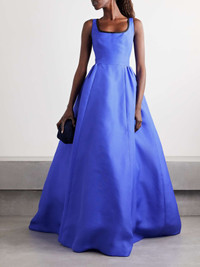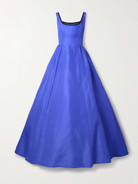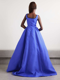 Carolina Herrera's gown is designed in a vibrant blue shade inspired the petals of delphinium flowers. Made from glossy silk-gazar, it has a voluminous shape that's pleated for texture and held in place by a structured mesh lining. Keep accessories simple to really showcase its beauty. Size & Fit - Fits true to size, take your normal size - Intended to be fitted at the bust and waist, loose at the hip - Mid-weight, non-stretchy fabric - Model is 175cm/ 5'9" and is wearing a US 2 Details & Care - Blue and black silk-gazar - Concealed hook and zip fastening at back - 100% silk - Dry clean - Designer color: Delphinium