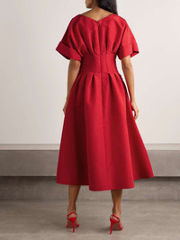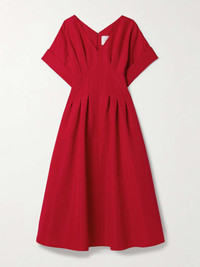 EDITORS'NOTES Carolina Herrera's effortlessly feminine midi dress has inverted pleats along the bodice that create a subtle hourglass silhouette. It's tailored from silk-faille in bold 'Herrera Red'. Match the color to your lipstick or nail polish. SIZE & FIT Model measurements: - Fits true to size, however those who are between sizes should take the smaller size - Designed to be slightly fitted at the bust and waist, loose at the hip - Mid-weight, non-stretchy fabric - Model is 175cm/ 5'9" and is wearing a US 2 - Bust: 79cm/ 31” - Waist: 61cm/ 24” - Hip: 88cm/ 34.5” DETAILS & CARE - Red silk-faille - Concealed hook and zip fastening at back - 100% silk; lining: 100% polyester - Dry clean - Designer color: Herrera Red