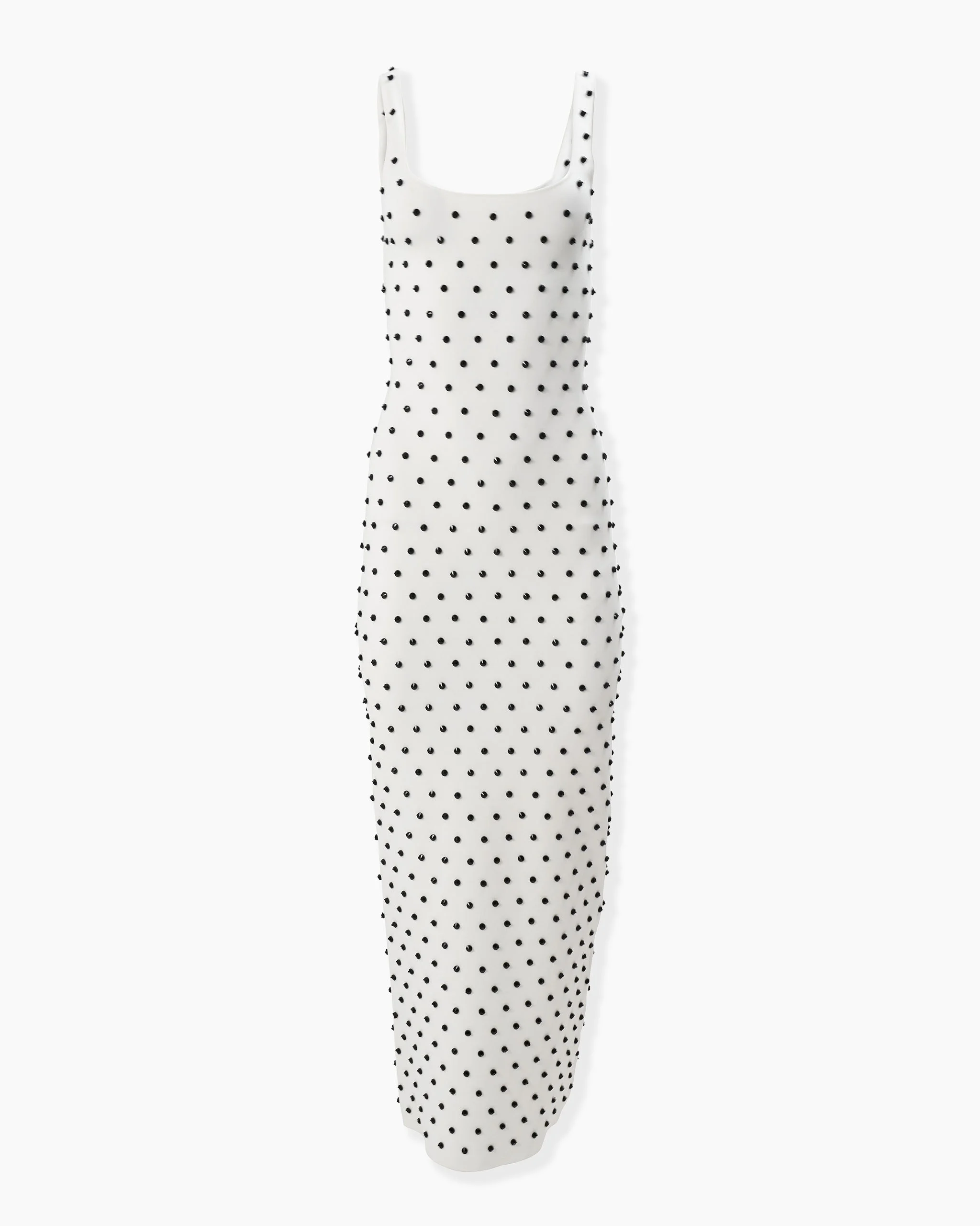 Hand-beaded polka dots reinterpret an iconic House code on this dress, defined by its form-fitting silhouette and scooped neckline. Runway style Concealed zip fastening at the back SKU S2612E505KLG SIZE & FIT Slim fit Midweight polka dot viscose Model is 180cm/ 5’7” and is wearing a US 2 Bust: 29" Waist: 24" Hips: 33.5" COMPOSITION & CARE 100% Polyester Washing Instructions Spot Clean Only Made in United States of America