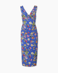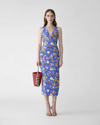 Cut from stretch-cotton with a vibrant poppy print, this sleeveless midi dress features a V-neckline with ruched gathers that knot at the bust. Side ruching at the waist enhances the figure-hugging silhouette. Front and back V-neckline Side slit Concealed zip fastening at the side SKU R2611N565PSR SIZE & FIT Close fit, midi length Midweight stretch-cotton Model is 175cm/ 5’9” and is wearing a US 2 Bust: 31.5" Waist: 23.5" Hips: 34.5" COMPOSITION & CARE 95% Cotton 5% Elastane Washing Instructions Dry Clean Only Made in United States of America