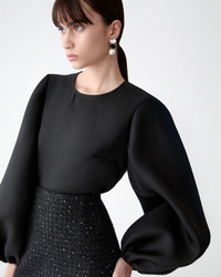 Billowing sleeves and puffed shoulders give this silk-gazar shirt a sculptural presence. Style it tucked into our Lurex Tweed Mini Skirt. Buttoned closures at the back SKU C2611N206TXG SIZE & FIT Regular fit Midweight silk-gazar Model is 175cm/ 5’9” and is wearing a US 2 Bust: 31" Waist: 23.5" Hips: 35.5" COMPOSITION & CARE 100% Silk Washing Instructions Dry Clean Only