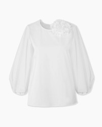 A magnificent rosette blooms at the collar of this fitted stretch-cotton top, which is finished with voluminous puff sleeves. SKU R2611E216SCT SIZE & FIT Slim fit Midweight stretch-cotton Model is 177cm/ 5’9” and is wearing a US 2 Bust: 31" Waist: 24" Hips: 35.5" COMPOSITION & CARE 97% Cotton 3% Polyurethane Washing Instructions Dry Clean Only Made in United States of America