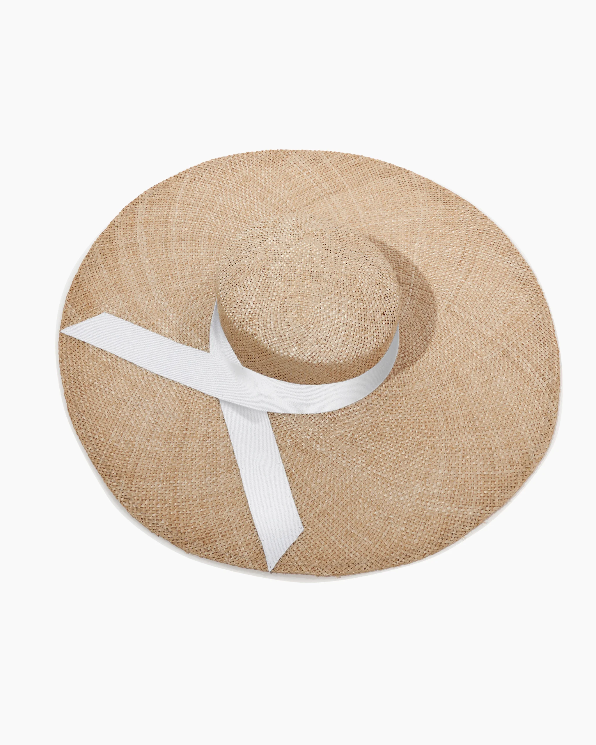 Exude effortless chic in this wide-brimmed sun hat, crafted from natural raffia straw with ribbon ties. SKU E2551N700RAF COMPOSITION & CARE 100% Raffia Washing Instructions Clean with a soft, dry cloth Made in United States of America