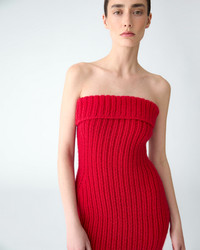 This strapless mini dress is hand-knit from soft, chunky cashmere. A ribbed trim adds dimension to the minimalist silhouette. SKU P2512N507KCA SIZE & FIT Close fit, mini-length Midweight cashmere knit Model is 179cm/ 5’11” and is wearing a US 2 Bust: 29.5" Waist: 22" Hips: 34.5" COMPOSITION & CARE 100% Cashmere Washing Instructions Dry Clean Only Made in United States of America