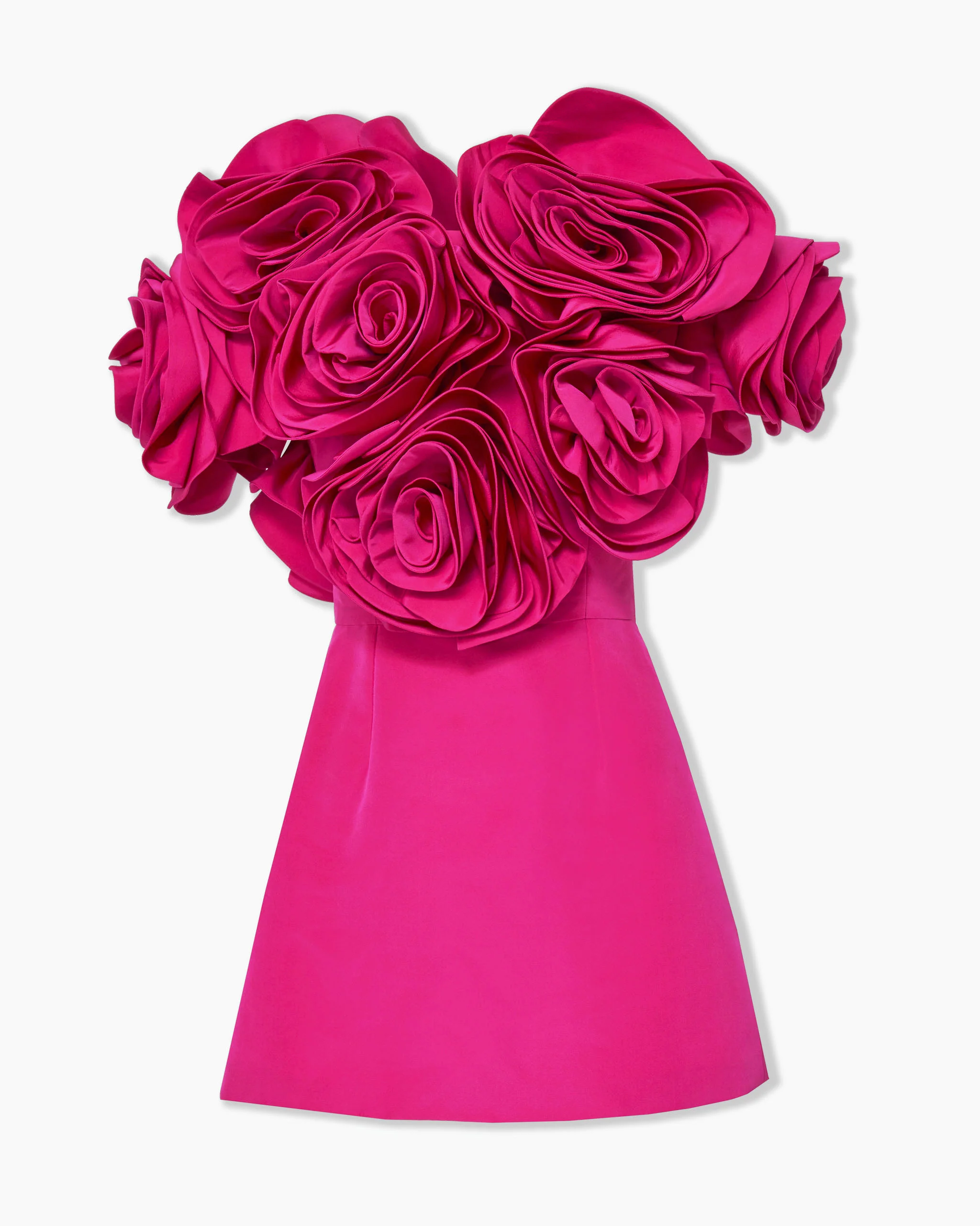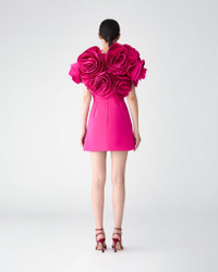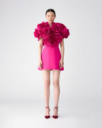 This whimsical mini dress is crafted from luxurious silk faille, adorned with hand-draped flowers that bloom into a magnificent bouquet of roses. Runway style Concealed zip closure at the back SKU F2511N555SFA SIZE & FIT Voluminous bodice, A-line mini skirt Midweight silk-faille Model is 178cm/ 5’10” and is wearing a US 2 Bust: 29" Waist: 23" Hips: 34.5" COMPOSITION & CARE 100% Silk Washing Instructions Dry Clean Only Made in United States of America