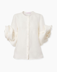 Softly sculpted rosettes bloom at the sleeves of this silk gazar blouse, bringing a graceful touch of volume to its minimalist silhouette. Buttoned front SKU C2611N200TXG SIZE & FIT Regular fit Midweight silk-gazar Model is 178cm/ 5’10” and is wearing a US 2 Bust: 30.5" Waist: 24.5" Hips: 34.5" COMPOSITION & CARE 100% Silk Washing Instructions Dry Clean Only