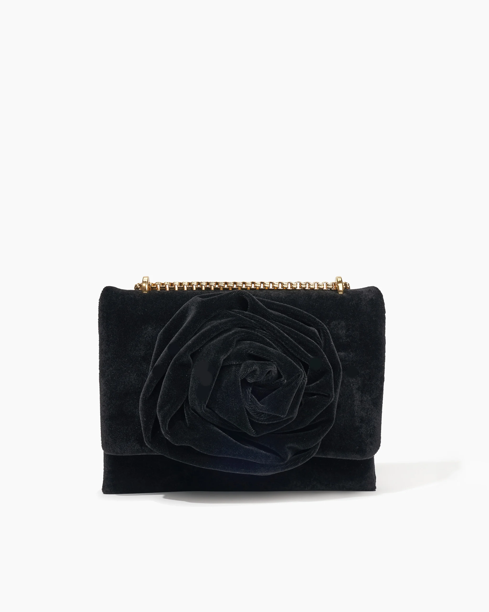 A romantic rosette and sleek gold-toned chain define this sophisticated black velvet bag. SKU F2531N603STV COMPOSITION & CARE 100% Rayon Washing Instructions Clean with a soft, dry cloth Made in Spain