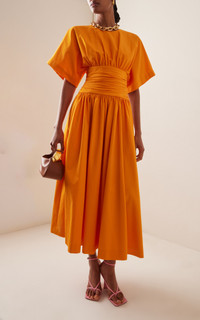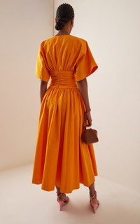 Ruched Cotton Poplin Midi Dress orange