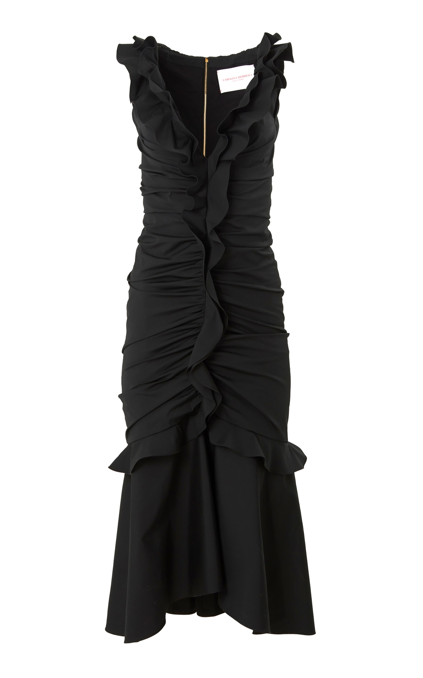 Inspired by the “self-assured” Carolina Herrera woman, Wes Gordon continues to reinterpret—yet still honor—the house’s iconic codes reimagining signatures with fresh whimsy. Crafted from a stretchy cotton blend, this midi dress features a ruched front seam trimmed with ruffles for a flirty touch. PRODUCT DETAILS - Pre-Fall '24 - Zip fastening - Composition: 97% Cotton, 3% Polyurethane - Dry clean - Made in the United States of America SIZE & FIT - Our model is wearing a size US 2 - Model is 5'10.5" with a 31.5" bust, 23.5" waist, and 35.5" hip - Designed for a slim fit