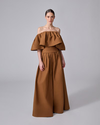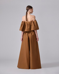 An off-shoulder silhouette with a low neckline defines this playful top, which is cut from stretch-cotton sateen. Wear it with the matching palazzo pants. Elasticized armbands Concealed hook-and-eye closure at the back SKU P2511N227STS SIZE & FIT Relaxed, oversized fit Midweight stretch-cotton Model is 179cm/ 5’11” and is wearing a US 2 Bust: 29.5" Waist: 22" Hips: 34.5" COMPOSITION & CARE 95% Cotton 5% Elastane Washing Instructions Dry Clean Only Made in United States of America