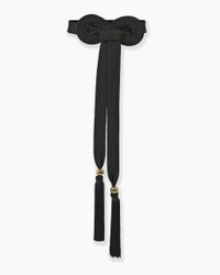 This satin rope belt is centered on a bold knot inspired by an Ancient Greek scroll motif, finished with long tassels and metallic bead accents. SKU R2631N104STN SIZE & FIT Model is 179cm/ 5’9” and is wearing a US 2 Bust: 30" Waist: 24" Hips: 34" COMPOSITION & CARE 100% Rayon Washing Instructions Spot Clean Only Made in Italy