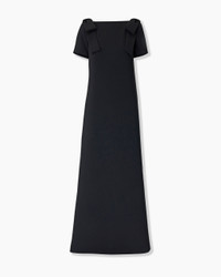 Crafted from fluid crepe, this elegant gown features short sleeves and bow details at the neckline. Boat neckline Fixed shoulder bows Side pockets Concealed zip fastening at back Lined Composition 92% Polyester, 8% Polyurethane Cleaning Instructions Dry Clean Only Made in USA SKU ICN11N718SFR