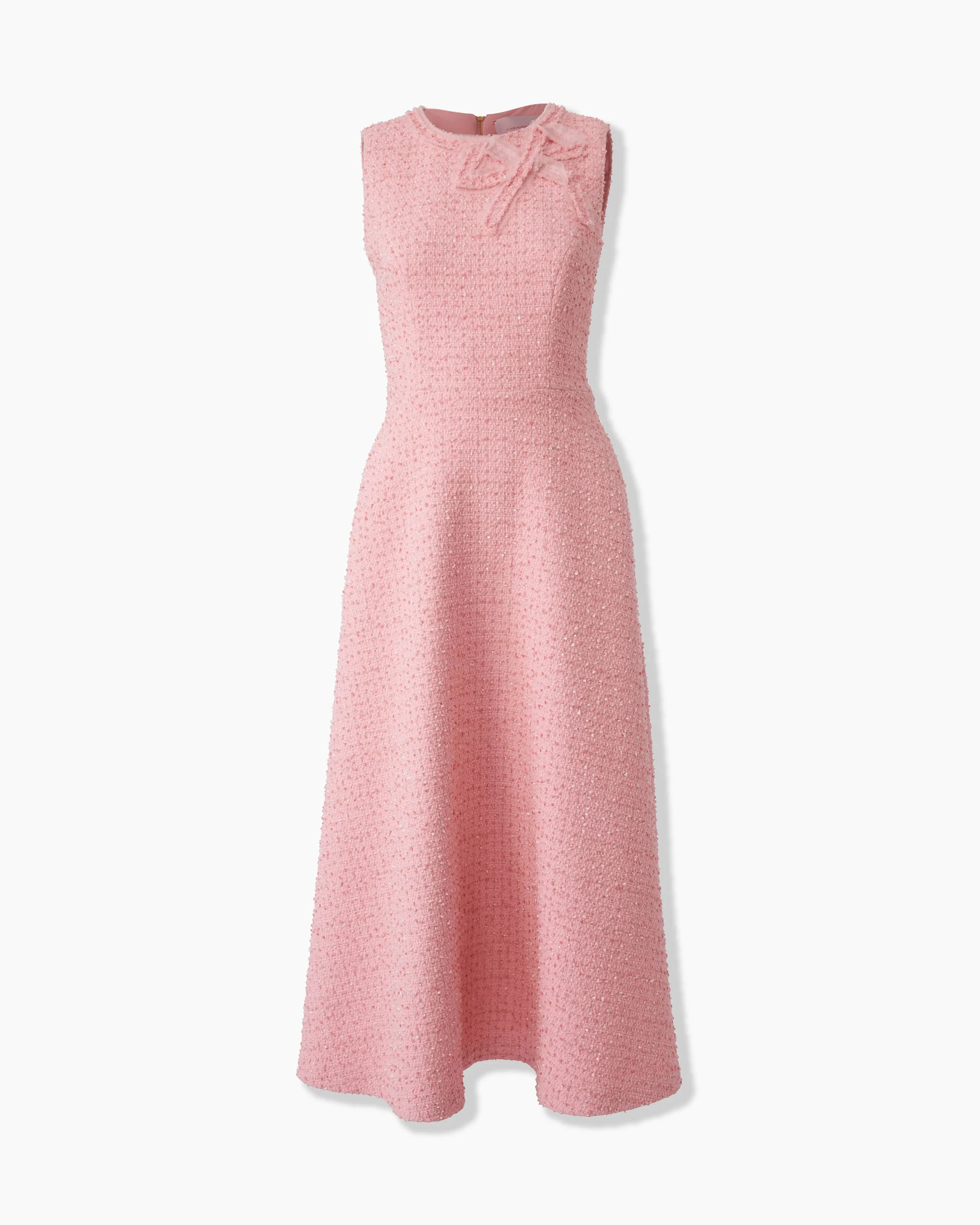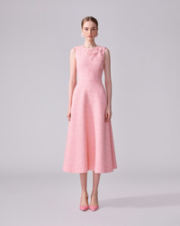 This sleeveless midi dress is tailored from soft, cotton-blend tweed with a touch of sparkle. At the collar is an oversized applique bow, a detail inspired by the 1950's doll collection of Wes Gordon's mother. Exposed zip fastening at the back SKU P2511N509CNT SIZE & FIT Fitted bodice with A-line midi skirt Midweight cotton-blend tweed Model is 178cm/ 5’10” and is wearing a US 2 Bust: 31" Waist: 23" Hips: 34" COMPOSITION & CARE 48% Cotton 32% Polyester 20% Nylon Washing Instructions Dry Clean Only Made in Italy