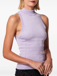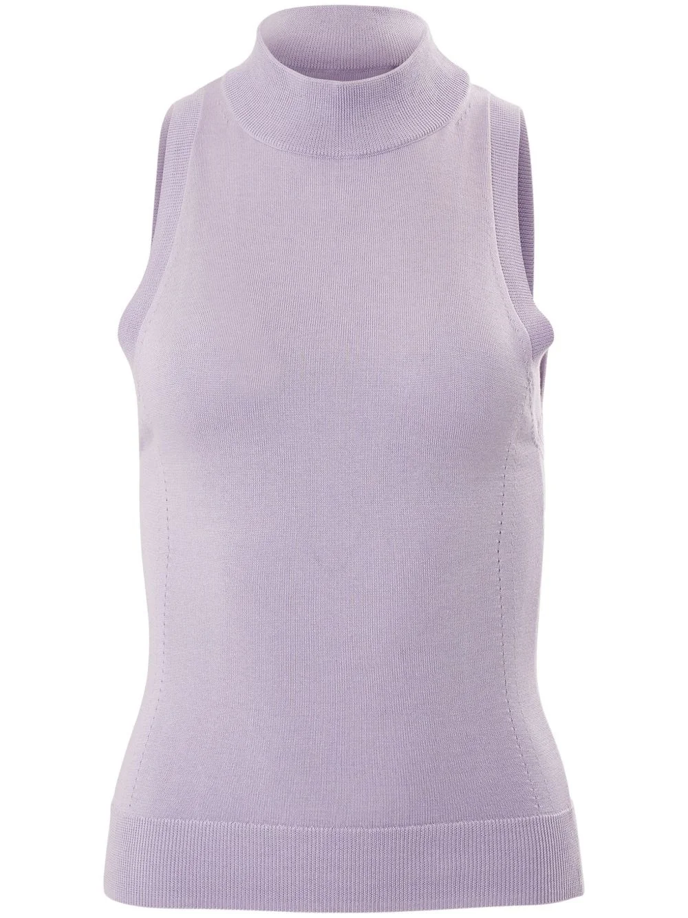 sleeveless knitted top Highlights - Lilac purple - Silk-cotton blend - Knitted construction - High neck - Sleeveless - Ribbed hem Imported Composition Silk 55%, pure cotton 45% Washing instructions Dry Clean Only