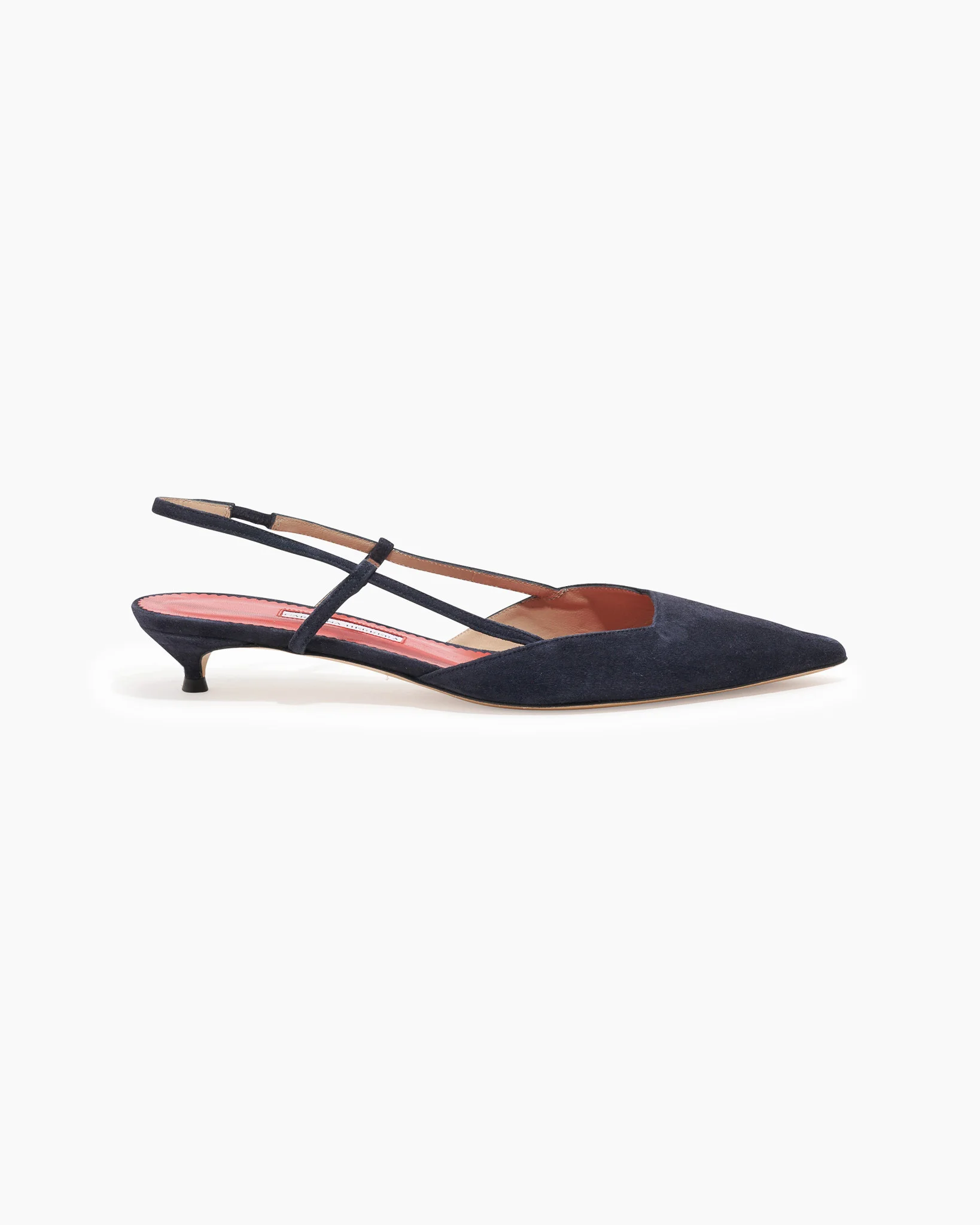 Crafted in suede, these chic kitten heels feature a pointed toe and delicate slingback strap. Composition 100% Leather Washing Instructions Spot Clean Made in Spain SKU P2434N501SUE