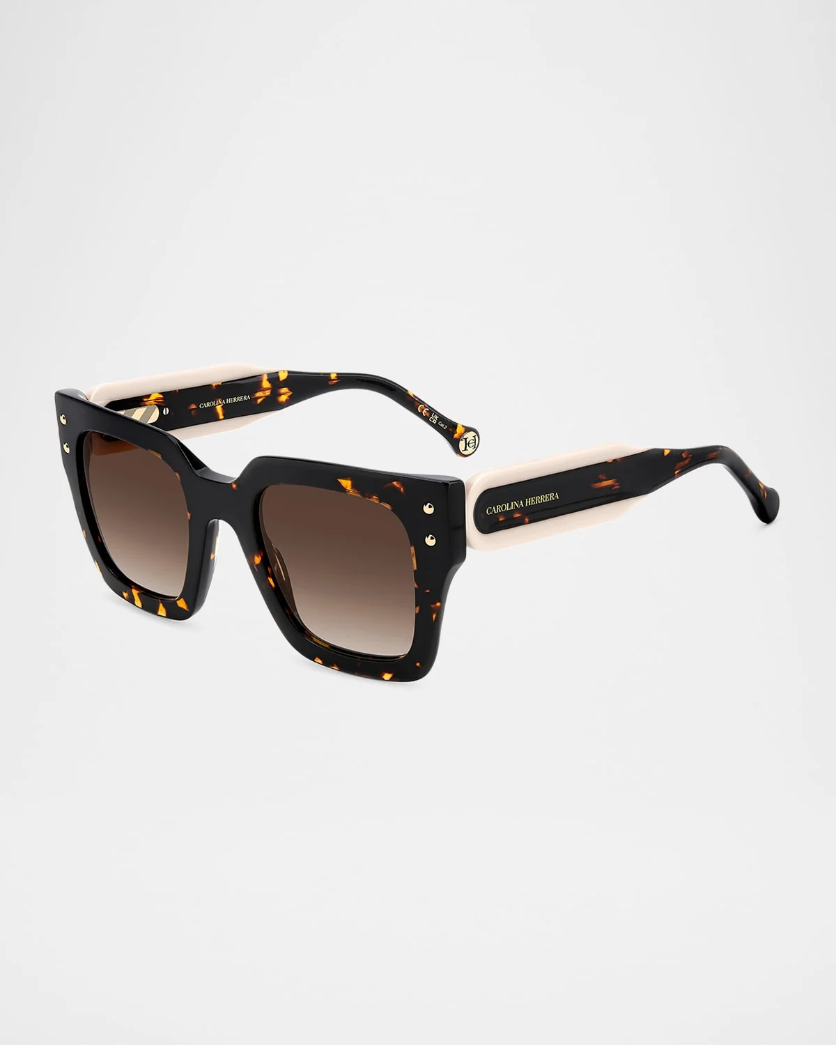 - Carolina Herrera square sunglasses in acetate - Eye/bridge/temple (in mm): 51-23-145 - Gradient lenses - Saddle nose bridge - Logo at temples - Thick, tapered arms - Acetate - Wipe clean - 100% UVA/UVB protection - Imported - Proposition 65 warning for California residents