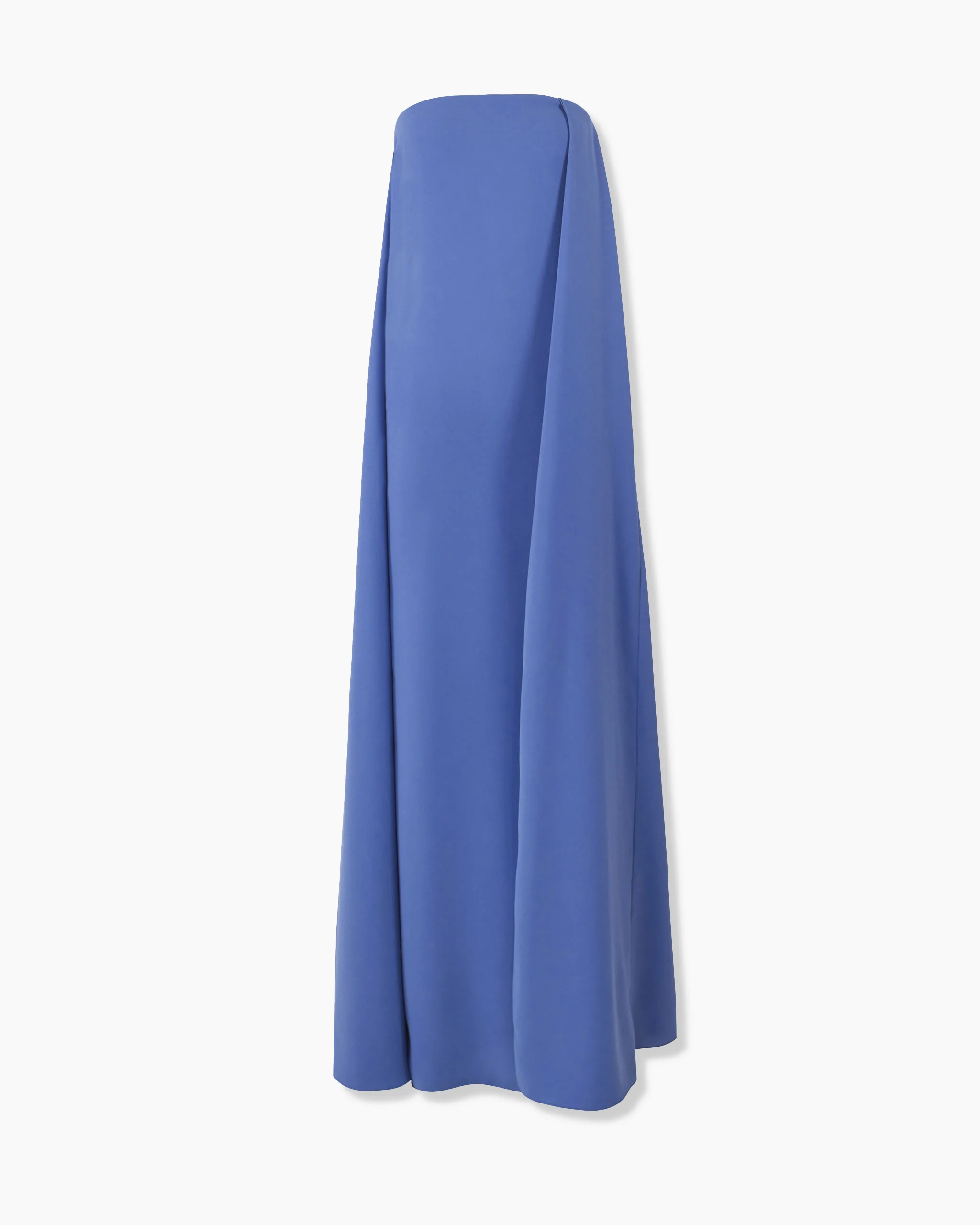 Exude effortless elegance in this strapless gown, cut from satin-crepe in an Aegean-inspired hue. A draped overlay falls from the sides into a flowing, cape-like back, adding graceful movement to the minimalist silhouette. Strapless Corset lining Concealed zip fastening at back SKU R2611N707SBC SIZE & FIT Close fit, extra-long length Light weight crepe Model is 175cm/ 5’7” and is wearing a US 2 Bust: 30.5" Waist: 24" Hips: 34.5" COMPOSITION & CARE 100% Polyester Washing Instructions Dry Clean Only Made in United States of America